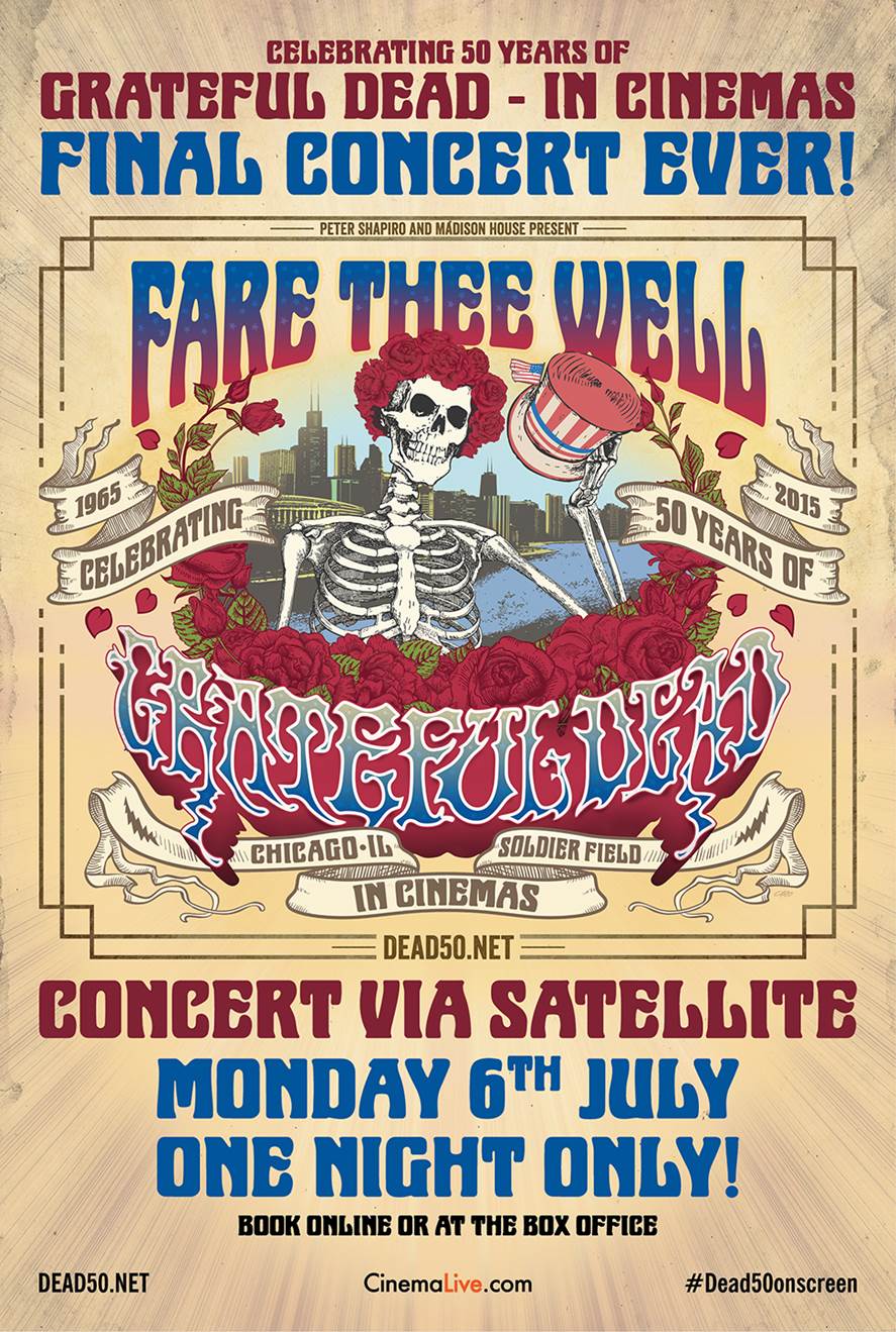 CinemaLive, Peter Shapiro, ja Madison House ylpeinä esittävät: Fare Thee Well: 50 vuotta Grateful Deadia valkokankailla ennennäkemättömässä tapahtumassa maanantaina 6.7.2015.