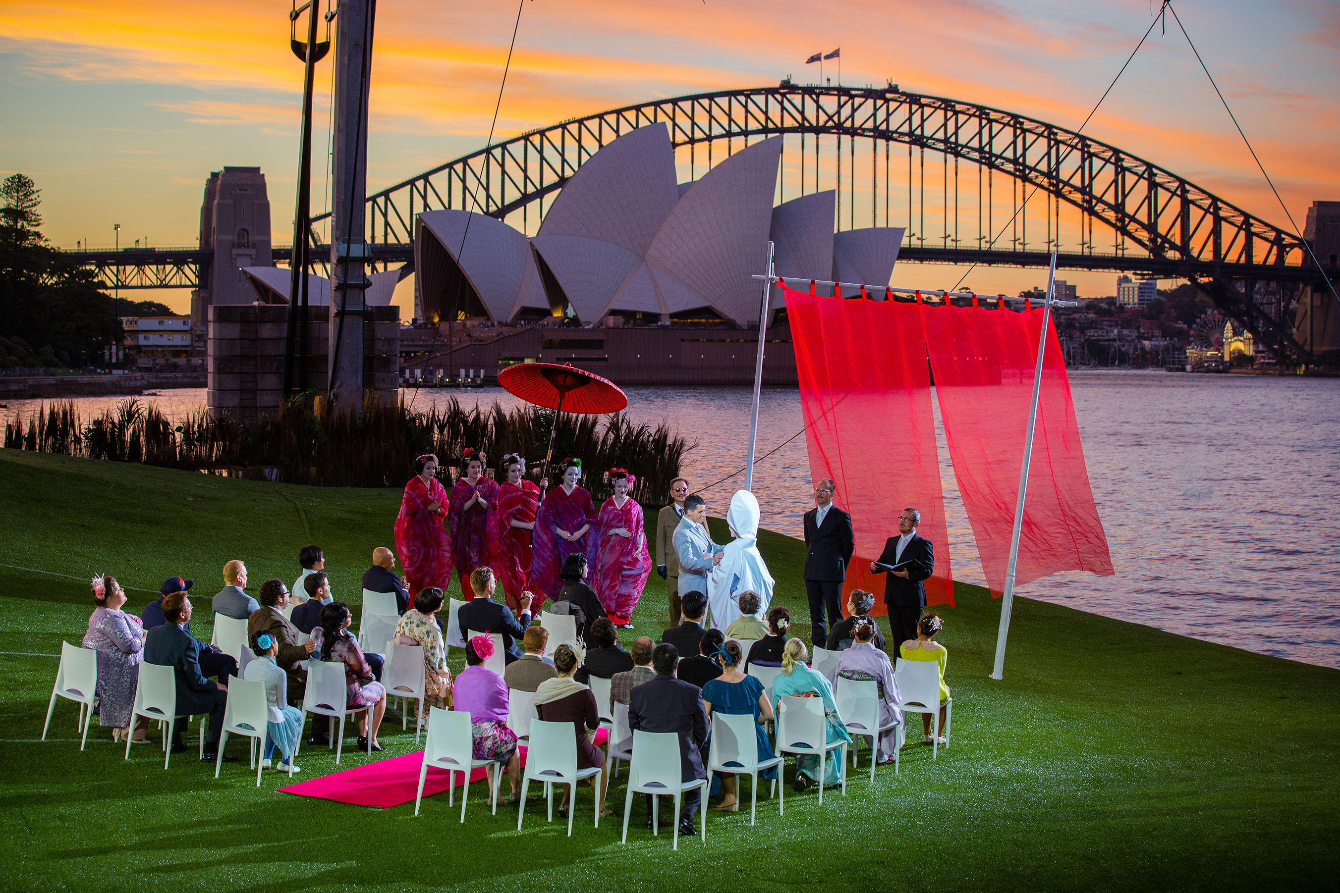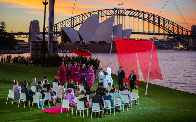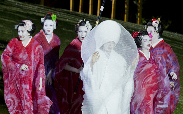 Synopsis Madama Butterfly on jokavuotisen Sidneyn satamassa järjestettävän oopperaspektaakkelin kolmas teos. Lavasteisiin kuuluvat myös jättimäiset , 12-metriset aurinko ja kuu –ja tietysti ilotulitteet. Lava on rakennettu veden päälle, ja sen taustalla siintävät Sidneyn kuuluisa silta ja oopperatalo.