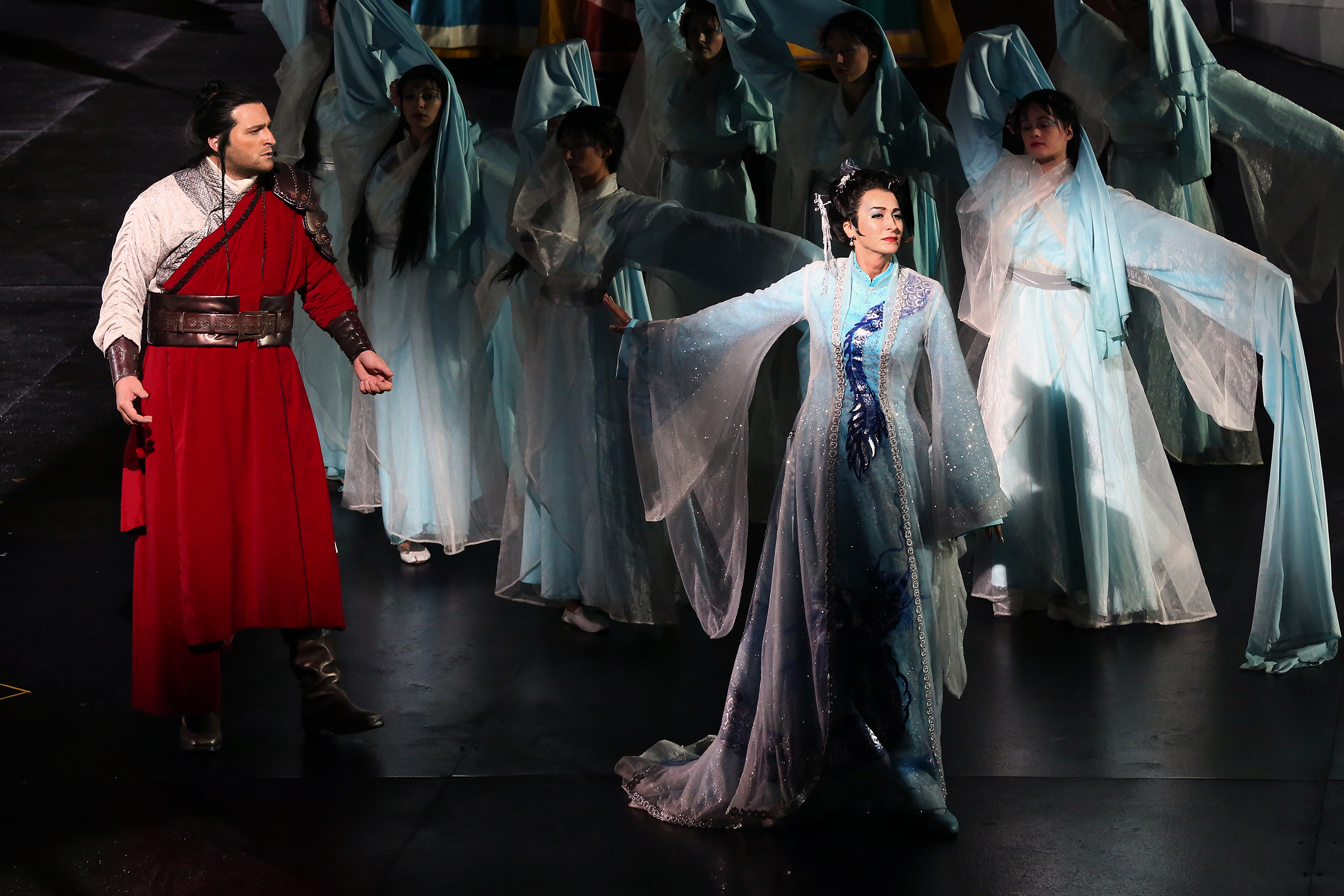 Turandot on kuvankaunis prinsessa, joka haastaa kosijansa ratkaisemaan kolme arvoitusta. Väärästä vastauksesta on palkintona kuolema, oikein arvannut saa prinsessan omakseen. Kukaan ei ole koskaan ratkaissut kaikkia. Kaukaisen maan prinssi Calaf rakastuu prinsessaan, ja uhkaa kohtaloa hänen vuokseen. Kukaan ei voi saada häntä pyörtämään päätöstään. Mutta tällä kertaa pelissä ei ole vain prinssin oma elämä, vaan kaikkien joita hän rakastaa.