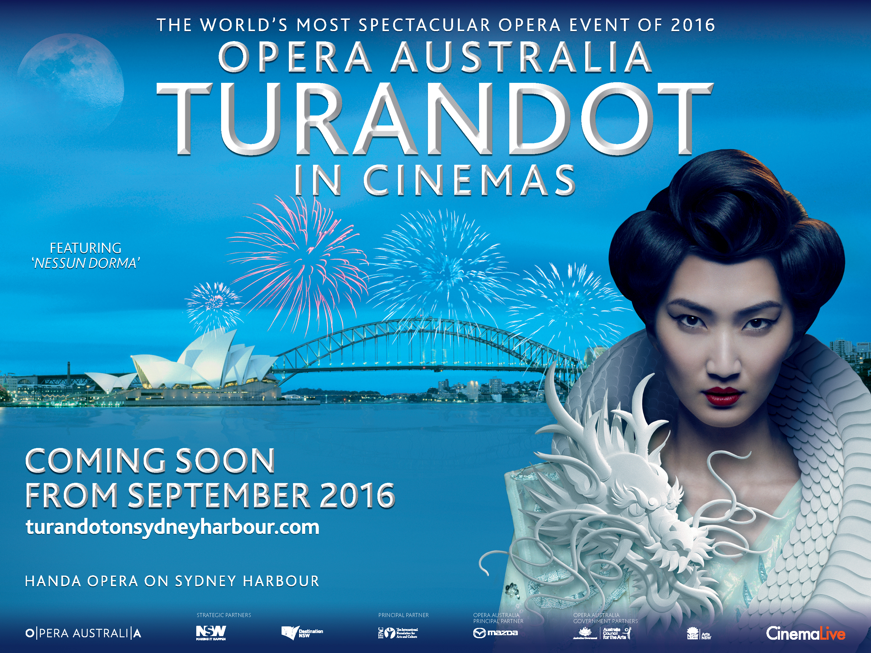 Handa Operan Turandot on tarina rakkaudesta kuoleman varjossa. Sydneyn satamassa, veden päälle rakennetulla lavalla kuvattu teos on täydellistä musiikin ja nautinnon harmoniaa. Kiinalaisen Chen Shi-Zhengin ohjaus on vertaansa vailla.